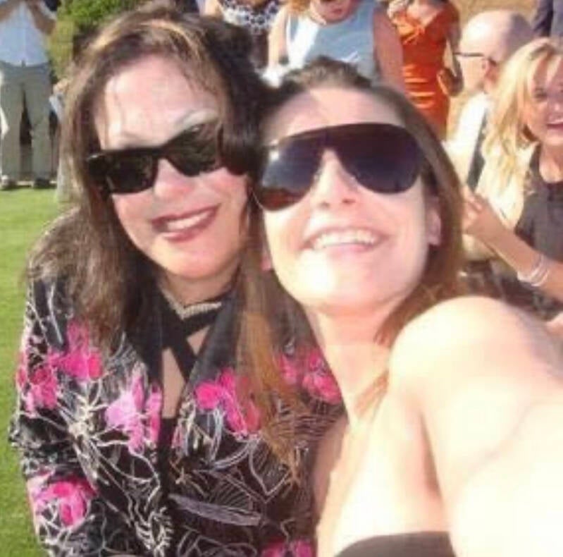 Jacqueline Crowe Downs (Miss Peaches) on left