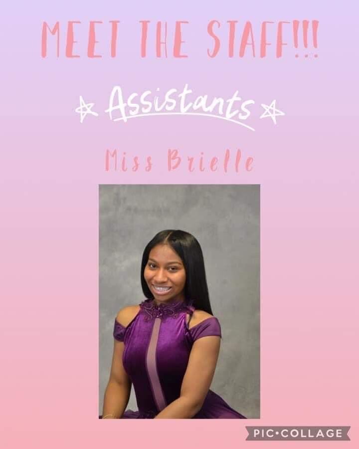 Hello, my name is Miss Brielle ❤️ I am 20 years old. I have been dancing since I was 3 years old. I love working with children. I am currently a college student with a Major in Education. My favorite color is pink, and my favorite snack is chocolate chip little bites. I am looking forward to meeting you all in the Fall!!!